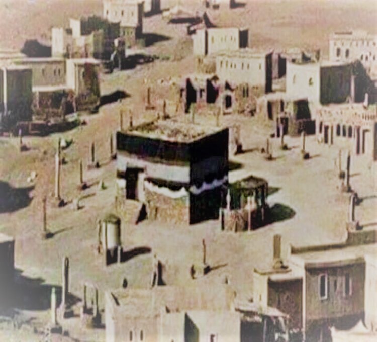 D’après la mythologie arabe, La Mecque est le nombril de la terre et l’endroit à partir duquel elle a été étendue en cercles concentriques. La Ka’ba occupe l’emplacement, sur lequel Dieu en tente pour Adam, lorsqu’il fut chassé du Paradis. L’édification du sanctuaire est attribuée soit à Adam, soit à Abraham. Le Coran (2.127) en affirme l’origine abrahamique.