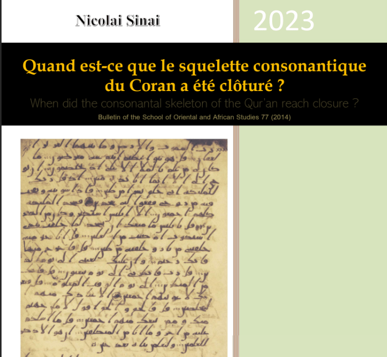 Quand est-ce que le rasm du coran a été clôturé ? (réponse de Nicolai Sinai )
