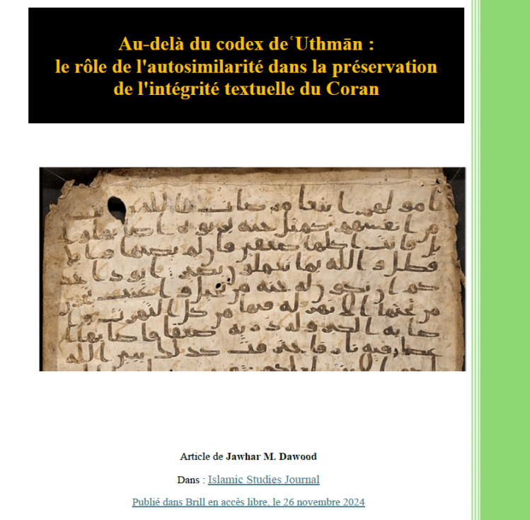 Au-delà du Codex de ‘Uthmân, le rôle de l’autosimilarité dans la préservation du texte